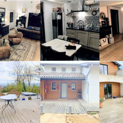 Situation: A 10 km de Lyon.Maison : Très belle maison de 250 m² avec superbe vue sur la ville, 7 pièces sur 3 niveaux, alarme, dans un jardin clos de 5000 m² avec jacuzzi encastré sur la terrasse .Situation: Située dans un quartier résidentiel calme, entourée de bois, les petits commerces sont à 500 m et les grandes surfaces à 10 km.Confort : La maison dispose d'absolument tout le confort dont l'accès internet, la tv, le sèche linge, une chambre avec lit en 140 et salle de bain au rdc à votre disposition, parking dans le jardin. Il y a des dénivelés de quelques marches entre les pièces de vie (cuisine, salle à manger ).Animaux : Vous aurez à vous occuper en priorité de Napoléon un chien Border Collie né en 2018 ( (très affectueux et extrêmement bien dressé pour les balades à faire si possible quotidiennement ) et de Miloune une chatte née en 2013 ( (très indépendante mais affectueuse quand même).Autres services: arrosage du jardin et des plantes, ramassage du courrier et entretien des pièces occupées.Ce séjour est pour un couple ou une femme seule sans animal.Votre arrivée est à convenir avec la propriétaire.Séjour très apprécié par les précédents résidents qui affirment qu'il s'agit d'un excellent séjour avec des animaux adorables .
