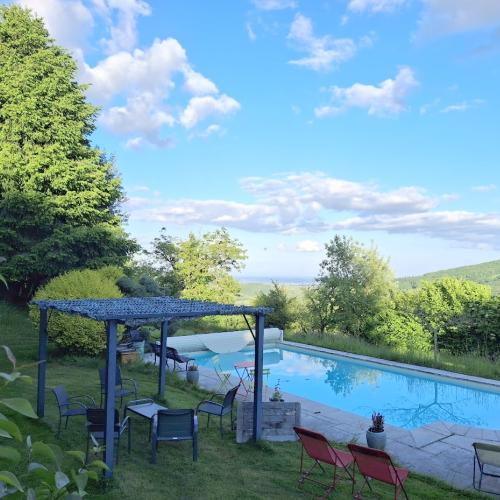 En fonction de vos disponibilités les dates sont ajustables , les propriétaires n'ont pas d'impératif ! Ils vous autorisent à recevoir un couple pour le réveillon du jour de l'an ! Environnement : A la campagne entre LYON ET MACON.Maison : Belle ferme rénovée de 160 m² sur 2 niveaux entourée d'un jardin de 3000 m² à la campagne, jolie vue dégagée sur les vignes et les bois, grande piscine en saison (peut être chauffée en demi saison), au calme.Situation : A la campagne au calme et à une altitude de 600 m. Les petits commerces et grandes surfaces sont à 5 ou 6 km. Un véhicule est indispensable.Confort : Vous disposerez de tout le confort dont 1 chambre disponible avec lit en 160 à l'étage ( les toilettes ne sont pas au même niveau ), tout le linge de maison est fourni, salle de bain avec douche et baignoire, parking dans le jardin pour votre véhicule obligatoire, cheminée, tv, machine à café capsules ou dosettes, sèche linge, lave vaisselle .Animaux : Vous serez en compagnie de 2 chattes: DJerba née en 2011, prend un traitement le matin et soir (pipette très facile) et CHATOUNETTE née en 2012 , elles dorment ou elles veulent. Sont indépendantes par chatière électronique.Autres services : entretien normal des pièces occupées.Ce séjour est pour un couple ou une personne seule non fumeur, sans animal.Arrivée: souhaitée LA VEILLE.Séjour très apprécié par les précédents résidents : "Accueil extraordinaire par un couple d une extrême gentillesse qui nous ont confié leur maison dans un cadre magnifique et surtout leurs chats avec une grande confiance. Des séjours dont on redemande !"
