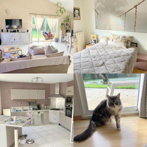Dates de départ et d'arrivée flexibles - à revoir si besoinSituation : A 2 km d'Artigues, Pompignac. 3 Km de Fargues Saint Hilaire.Maison: Belle et agréable maison de 130 m2 de plain pied, 7 pièces, jardin clos de 2200 m² avec piscine en saison et terrasse de 50 m².Située : dans un quartier résidentiel au calme, les petits commerces se trouvent à 1,5 km et les grandes surfaces à 3 km. Votre voiture est indispensable.Confort: Vous disposerez de tout le confort dont la TV, wifi, 2 chambres avec lit en 140 au RDC (linge de maison fourni )sèche linge, parking dans le jardin + garage, machine à café à capsule, lave vaisselle.Animaux: Vous serez en compagnie:d'un chien American Staffordshire né en 2014 qui est adorable : il dort sur un coussin, pas de canapé ni de lit. Très câlin et proche de l'humain.ainsi que 3 chats : Nikita une Main Coon de 2012 ( rares sorties dans le jardin, mais plutôt casanière) et ISKA une Sacré de Birmanie de 2013 (sort quand elle veut, sait se faire entendre quand elle veut rentrer ), Willox une bengal née en 2024 (sorties peu fréquentes et sous surveillance ) .Ce séjour est pour un couple ou une femme seule sans animal.Votre arrivée et votre départ sont à convenir et à adapter selon vos disponibilités, .Nouveau