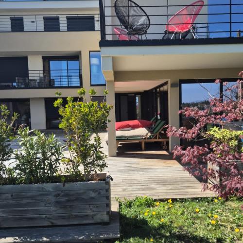 Situation : En ville à 2,4 km de Clermont Ferrand.Maison : Superbe maison moderne de 360 m² sur 3 niveaux, maison réellement à 2 étages (3 eme étage chambre personnelle) comprenant 8 pièces, jardin clos de 600 m², piscine en saison. Vous vivez sur un seul niveau.Environnement : Les petits commerces sont à 1 km, une grande surface à 2 km, arrêt de bus à 500 m.Confort : Vous disposerez de tout le confort dont 1 chambre au RDC avec lit en 140 ( draps et torchons fournis), propriété non fumeur, wifi, tv, sèche linge, lave vaisselle, parking dans le jardin, climatisation.Animaux : Vous serez en compagnie de INOU un labrador né en 2013 qui dort à l'intérieur (il dort beaucoup, promenades pas obligatoires) et VOLT un chat né en 2024 qui dort à l'intérieur et sort tout seul.Autres services : entretien des pièces occupées, arrosage de plantes intérieures, surveillance piscine.Ce séjour est pour Un couple ou une personne seule sans animal, non fumeur.Arrivée souhaitée la veille.Séjour très apprécié par les précédents résidents