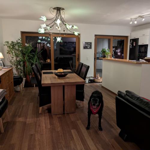 Situation : Au bord de l'axe Bellegarde Annecy, à 10 minutes en voiture des commodités. A 16 km d'Annecy.Maison :Maison de 280 m² sur 2 niveaux comprenant 8 pièces, jardin clos de 900 m², piscine hors sol de 15 m² en saison.Environnement : Située à la campagne à 450 m d'altitude. Les petits commerces sont à 5km et une grande surface à 4 km. Autoroute à 11 km. Un véhicule est indispensable.Confort : Vous disposerez de tout le confort dont la TV, wifi, machine à café capsules/dosettes, lave linge, lave vaisselle, sèche linge, parking dans le jardin, cheminée, 1 chambre disponible à l'étage avec lit en 160, tout le linge de maison est fourni. Maison Ancienne rénovée en 2011, cave au rez-de-chaussée, partie habitable au premier avec terrasse, chambre au second, jardin en Bord de rivière. Pièces à vivre de 40 m2 ouverte sur la cuisine et l'entrée, salle de bain au premier et au second.Animaux : Vous serez en compagnie de 3 chiens , une volière et un aquarium:Magic: un spitz F de taille moyenne née en 2016: elle dort à l'intérieur, obéissante, câline et très calme. Sorties dans le jardin 3 fois par jours, mais elle sait rester tranquille 6-8 heures de temps si il n'y a personne à la maison. Pas besoin de faire des balades.Pixelle: une chienne Eurasier née en 2019 : Sortie dans le jardin, en gardant un œil dessus, elle peut passer dans la rivière si elle reste dehors trop longtemps, elle revient à la fenêtre rapidement. Elle essayera de partir si on ne lui ouvre pas la porte, elle sort sur demande, mais sait rester 6-8 heures de temps sage si il n'y a personne à la maison. Elle est craintive mais pas agressive, elle évitera de s'approcher, le temps de connaitre les gens, elle est très calme et câline une fois apprivoisée.Vérone: une chienne Bouvier Bernois née en 2024 : Elle dort dans un espace clos sous les escaliers, elle y est aussi lorsqu'il n'y a personne à la maison. Elle a besoin de sortir avant 9h. Sorties dans le jardin sur demande, en gardant un œil dessus, elle peut rester 6-8 heures sans sortir si il n'y a personnes à la maison mais pas tous les jours, elle n'en a pas eu l'habitude. Mais ponctuellement sans problème. Jeune chienne elle est encore un peu fofolle, elle est gentille mais du fait de son poids de sa taille et de sa jeunesse elle peut être un peu brusque.Une volière avec une colombe australienne: Mettre les grains et l'eau une fois par semaine.Un aquarium avec 1 poisson rouge: allumer le matin, et donner à manger, éteindre le soir.Autres services: collecte du courrier.Ce séjour est pour un couple ou une personne seule , votre chien est accepté. Personnes calmes. Les fumeurs sont acceptés, les personnes habitués au vielles maisons sont les bienvenues, et surtout des personnes qui ne sont pas trop maniaques, car il s'agit d'une ancienne maison, avec trois chiens et un jardin, il est impossible de garder une maison impeccable. La propriétaire nous précise que la maison est propre et entretenue mais ne vous demandera pas de vous concentrer sur les taches ménagères. Arrivée souhaitée la veille chez ces nouveaux propriétaires. Nouveau