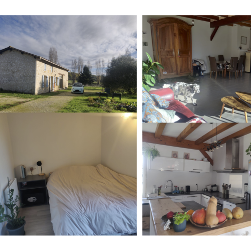 Situation : A 30 km d'Agen dans un village. Entre Mont de Marsan et Villeneuve sur Lot.Maison : Maison de 120 m² sur 1 niveau comprenant 9 pièces, terrasse de 29 m², jardin clos de 2500 m².Environnement : Les petits commerces et grandes surfaces sont à 1 km, arrêt de bus à 6 km, véhicule indispensable.Confort : Vous disposerez de tout le confort dont tv, wifi, machine à filtre et capsules, lave linge, lave vaisselle, parking dans le jardin, cheminée, une chambre disponible avec lit en 140, linge de maison fourni.Animaux : Vous serez en compagnie de ROXY une malinoise née en 2021, elle dort dans le salon, sorties en longe en forêt, chaque jour si possible, selon le rythme des personnes. Jouer avec elle dans le parc plusieurs fois par jour si la promenade ne peut pas se faire. elle vient d’un refuge, elle est maintenant tout à fait à l’aise, obéissante et très agréable.Autres services : entretien des pièces occupées.Ce séjour est pour un couple ou une personne seule.Arrivée à convenir avec ces nouveaux propriétaires. Du 23/12/2025 au 02/01/2026