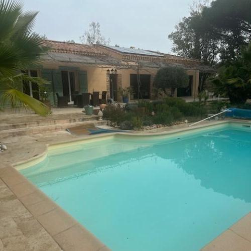 Situation : A 15 km de Frejus et 5 km de Bagnols en foretMaison : Très belle maison de 160 m², 6 pièces sur 1 niveau, terrasse de 100 m², jardin de 18000m², piscine chauffée en saison de 40 m².Environnement : Située entre village et campagne, dans un quartier résidentiel , entourée de bois, au calme. Autoroute à 18 km, petits commerces à 5 km et grandes surfaces à 15 km. Votre véhicule est indispensable. Prise de recharge véhicules électrique disponible sur la propriété.Confort : Vous disposerez de tout le confort dont la TV, wifi, machine à grains et capsules, lave linge, lave vaisselle, sèche linge, parking dans le jardin et extérieur, cheminée, climatisation, caméras extérieures. 2 chambres à votre disposition en RDC avec lits en 140 et 160 ( serviettes et torchons fournis ).Animaux : Vous serez en compagnie de Macao un adorable chien berger allemand né en 2018 qui dort sur le tapis du salon, sorties dans le jardin ou en laisse ( Nécessitant pour les sorties en laisse de la force ). Autres services: Arrosage et piscine en été. Nettoyage des feuilles pour faciliter l'écoulement pluvial ( Souffleur disponible, ramasse feuille). Arrosage des plantes intérieures et collecte du courrier.Ce séjour est pour un couple ou une dame seule ayant impérativement de l'expérience avec Homesitting, sans animal.Arrivée souhaitée vers 16h le 25 c'est à dire la veille puis dîner avec ces nouveaux propriétaires. Les propriétaires reviendront le 31 dans l'après midi.